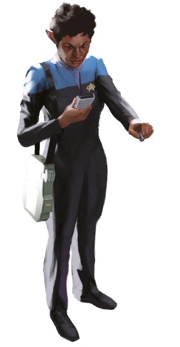 Lieutenant T'Prel was a Vulcan female who served in Starfleet during the late 24th century. In 2371, she was the chief medical officer aboard the USS Magellan. (Star Trek: Adventures: "A Star Beyond the Stars")